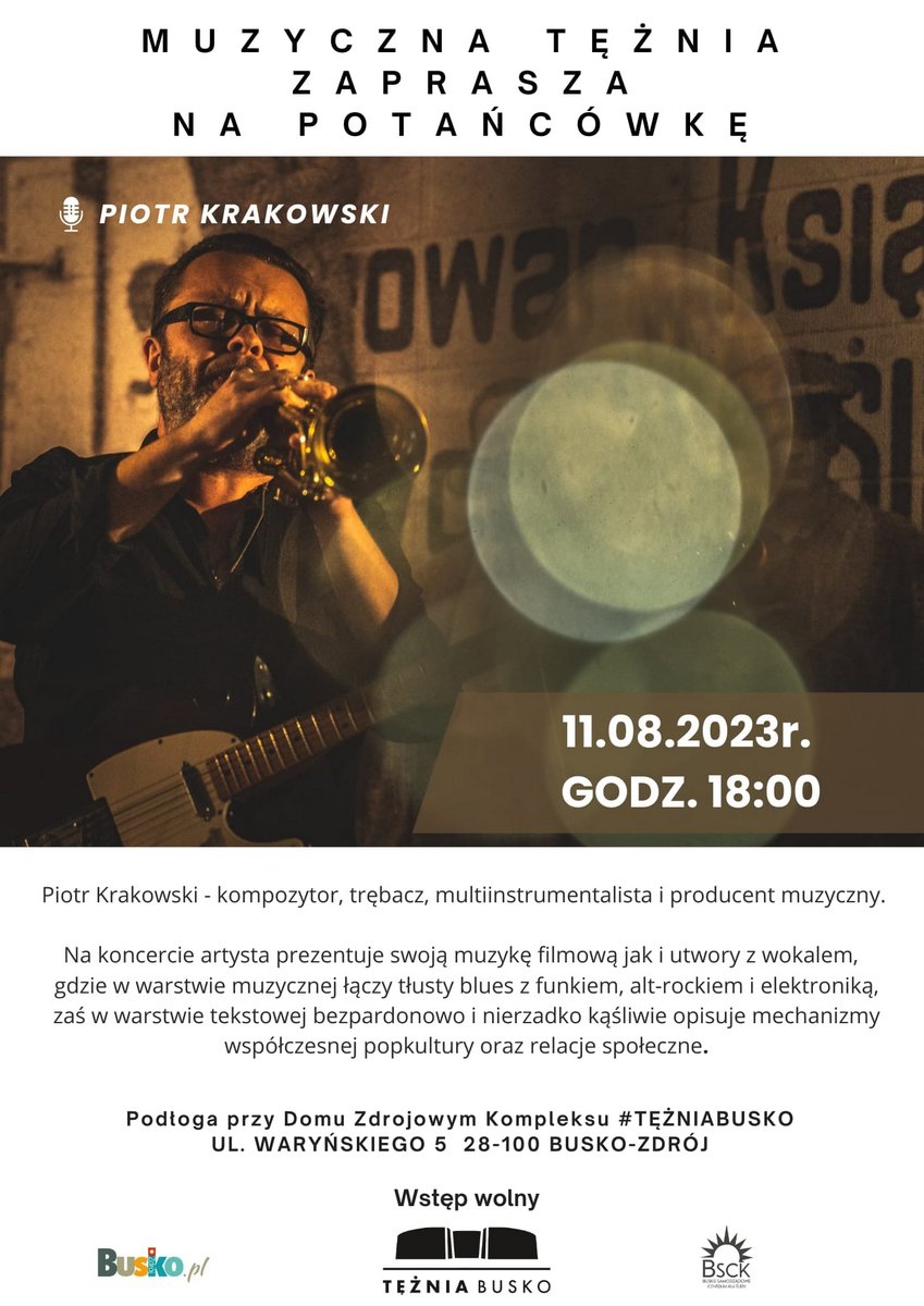 W najbliższy piątek, 11 sierpnia, przygrywać będzie Piotr Krakowski – uzdolniony trębacz, kompozytor i multiinstrumentalista. Jego talent muzyczny przenika różne obszary, a twórczość jest niezwykle wszechstronna, co znajduje odbicie w współpracy z różnorodnymi artystami na polskiej scenie rozrywkowej.