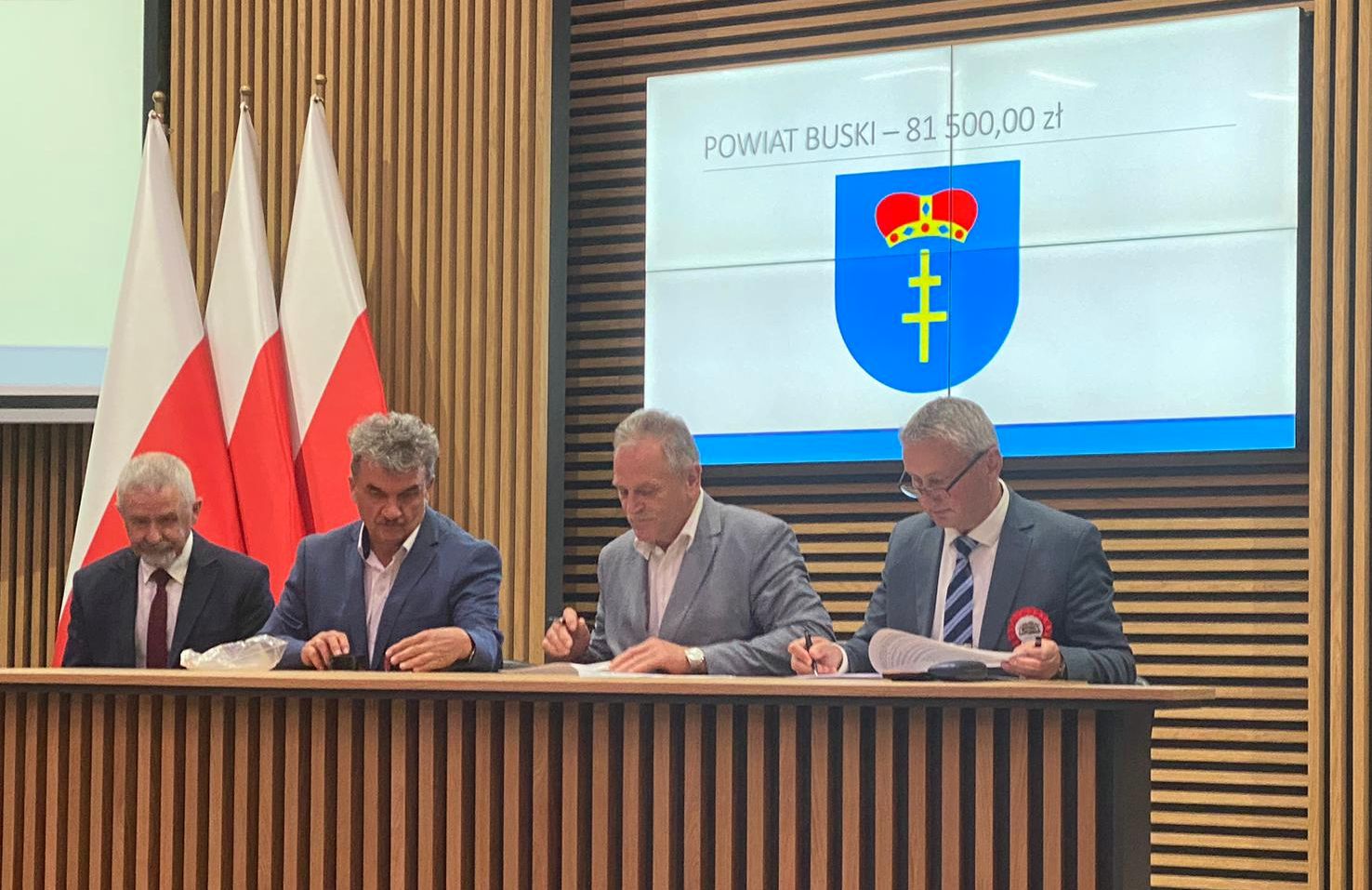 W dniu 10 sierpnia 2023 r. miało miejsce uroczyste podpisanie umowy między przedstawicielami Zarządu Powiatu Buskiego: Jerzym Kolarzem – Starostą Buskim i Stanisławem Klimczakiem – Wicestarostą Buskim a Zbigniewem Koniuszem - Wojewodą Świętokrzyskim oraz Kazimierzem Mądzikiem - Świętokrzyskim Kuratorem Oświaty na realizację zadań w ramach Rządowego programu rozwijania szkolnej infrastruktury oraz kompetencji uczniów i nauczycieli w zakresie technologii informacyjno-komunikacyjnych na lata 2022-2024 - Aktywna tablica.