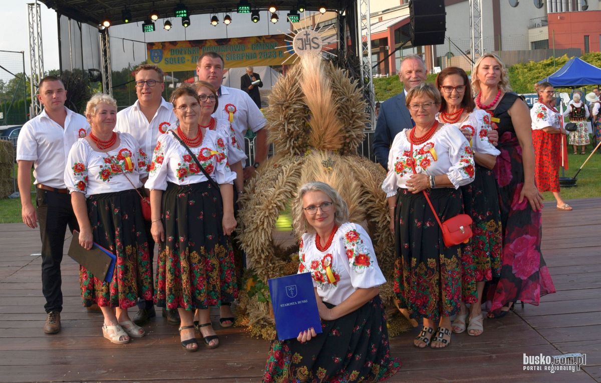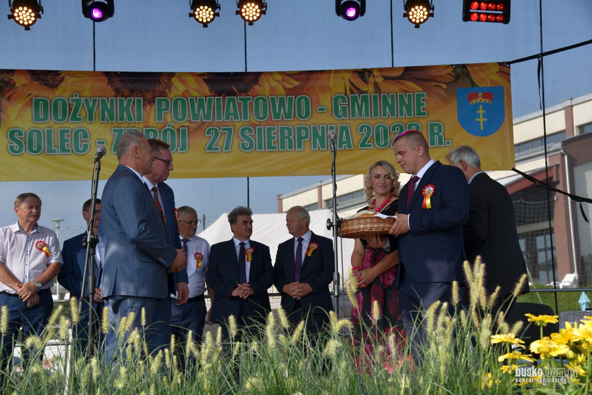 Starostami tegorocznych dożynek byli: Agnieszka Brzezińska z miejscowości Sępichów gm. Nowy Korczyn i Marcin Stanek z miejscowości Piestrzec gm. Solec-Zdrój.