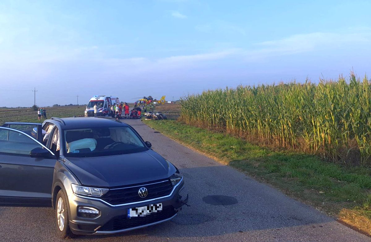 W środę, 13 września po godzinie siedemnastej w gminie Nowy Korczyn doszło do zdarzenia drogowego z udziałem motocykla marki Honda i samochodu marki Volkswagen. W wyniku zderzenia kierujący jednośladem 58-letni mężczyzna z licznymi obrażeniami ciała został przetransportowany helikopterem Lotniczego Pogotowia Ratunkowego do szpitala w Kielcach.