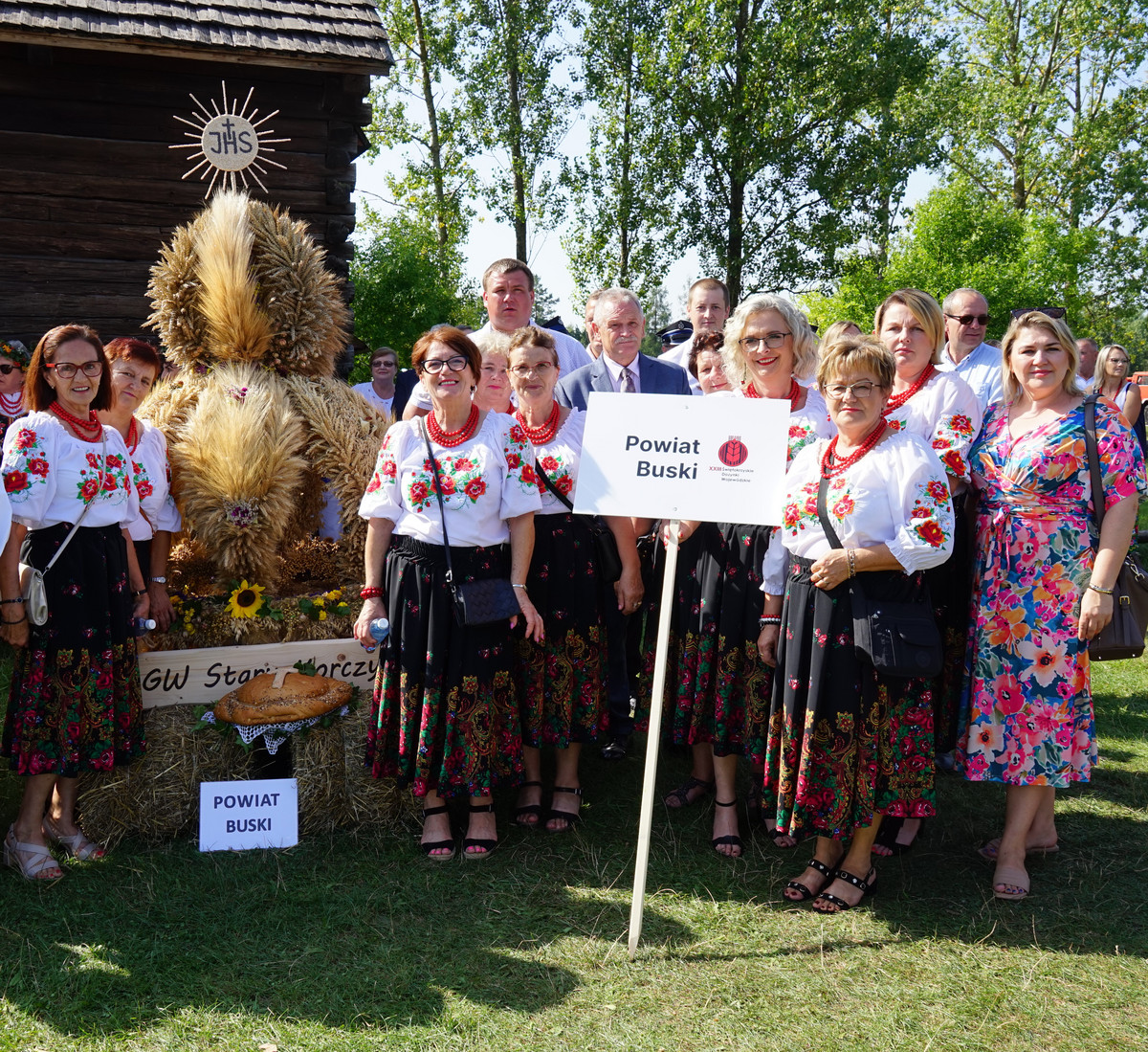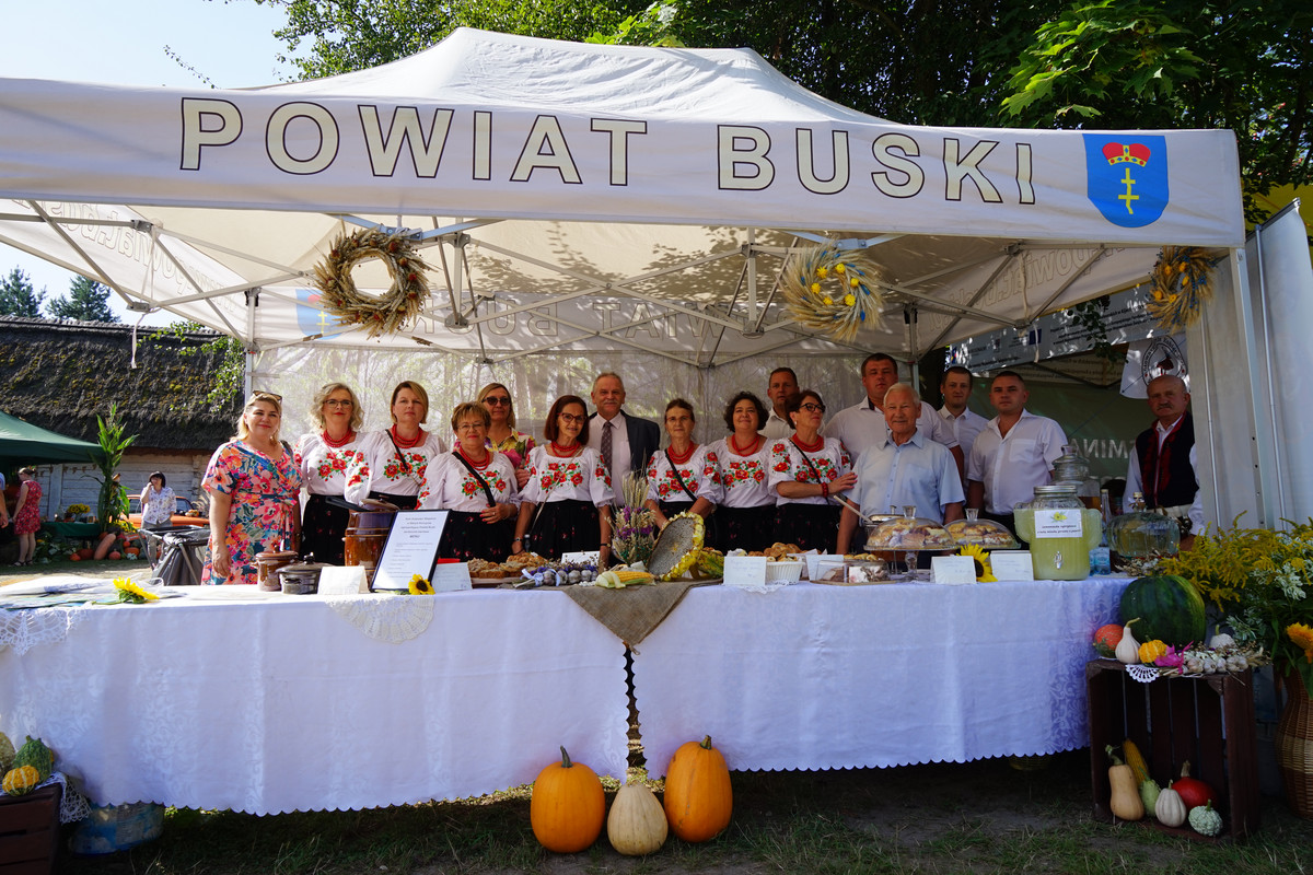 W konkursie na tradycyjny wieniec dożynkowy, Powiat Buski godnie reprezentował wieniec z Gminy Nowy Korczyn z miejscowości Stary Korczyn. Na scenie członkinie Koła Gospodyń Wiejskich zwyczajowo ośpiewały wieniec przygotowaną na tą uroczystość przyśpiewką przy akompaniamencie zespołu muzycznego. Skład delegacji powiatowej dopełnili: Jerzy Kolarz Starosta Buski, Krzysztof Wojtaś Radny Rady Powiatu w Busku-Zdroju oraz Paweł Zagaja Burmistrz Miasta i Gminy Nowy Korczyn oraz Piotr Strach Zastępca Burmistrza Miasta i Gminy Nowy Korczyn. Po występie na scenie, przedstawiciele naszego powiatu serwowali regionalne przysmaki na przygotowanym przez siebie stoisku powiatowym.