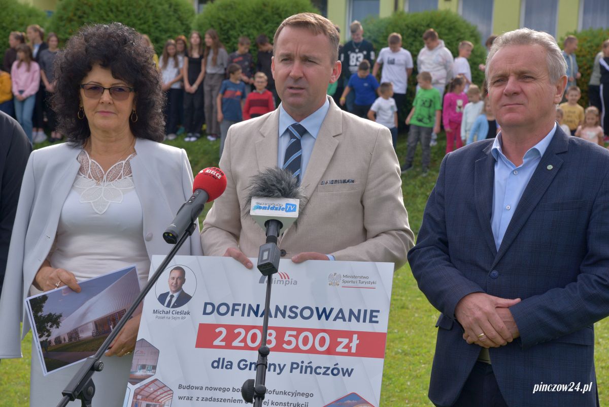 Na boisku przy Zespole Placówek Oświatowych w Kozubowie w powiecie pińczowskim w środę, 4 października odbyła się konferencja prasowa, w trakcie której przekazano promesę na budowę boiska wielofunkcyjnego.