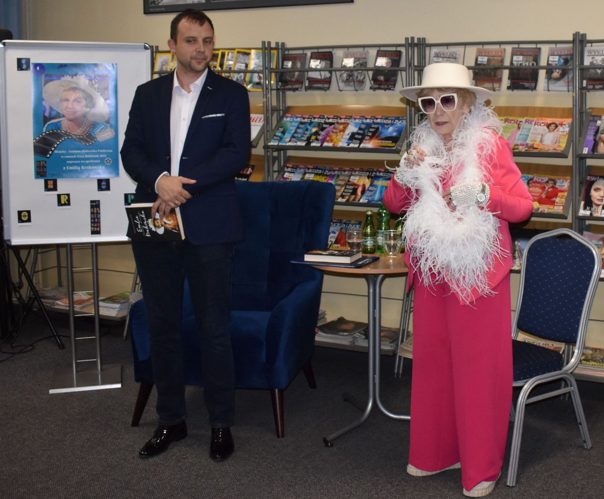 Najważniejszym spotkaniem, na które czekało wielu Czytelników było spotkanie z niesamowitą Emilią Krakowską. Klasa, styl i uśmiech to na pewno wizytówka Pani Emilii. Na powitanie nasz gość przygotował dla zebranych miła niespodziankę w postaci słodkiego poczęstunku. Aktorka jest absolwentką warszawskiej Państwowej Wyższej Szkoły Teatralnej . W swojej 60-letniej karierze zagrała wiele ról filmowych i teatralnych. Wystąpiła m.in. w takich produkcjach jak "Chłopi" i "Ziemia obiecana" oraz wielu popularnych serialach. O swojej pracy, publiczności Pani Emilia mówiła z wielkim szacunkiem. Uśmiech i poczucie humoru nie odstępowało naszego gościa przez cały wieczór. Spotkanie prowadził Pan Andrzej Kurdziel.