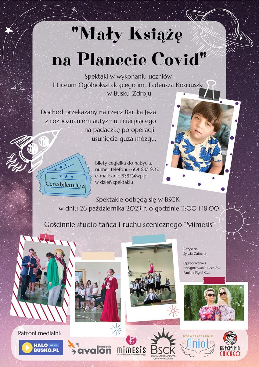 W dniu 26 października 2023 roku, I Liceum Ogólnokształcące im. Tadeusza Kościuszki w Busku-Zdroju zaprasza wszystkich miłośników kultury i teatru na wyjątkowy spektakl charytatywny zatytułowany "Mały Książę na Planecie Covid." To niezwykłe przedstawienie, które nie tylko dostarczy widzom rozrywki, ale także wspomoże w walce o zdrowie Bartka Jeża.