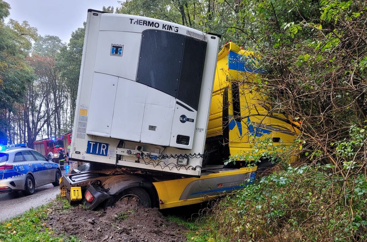Kierowca samochodu ciężarowego, który przewoził 22 tony ziemniaków, zdołał samodzielnie opuścić pojazd i na szczęście nie odniósł poważnych obrażeń. Na miejscu nie stwierdzono także wycieków płynów eksploatacyjnych z uszkodzonych pojazdów.