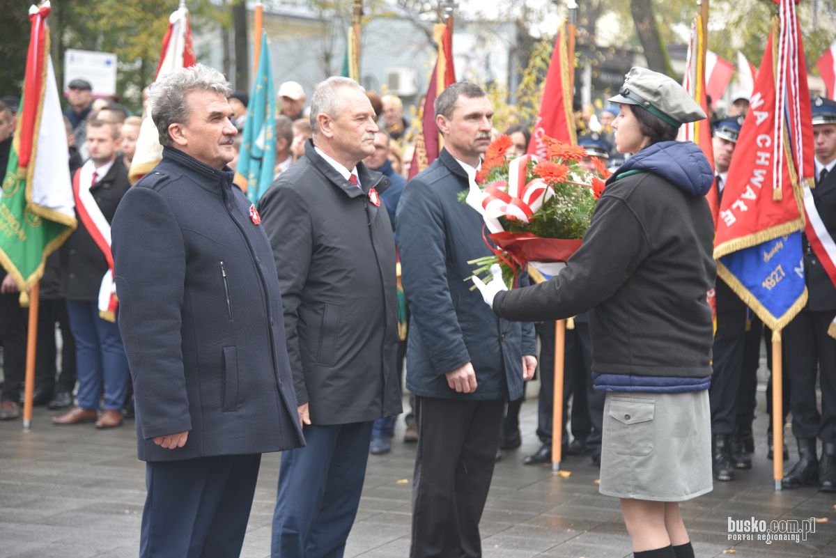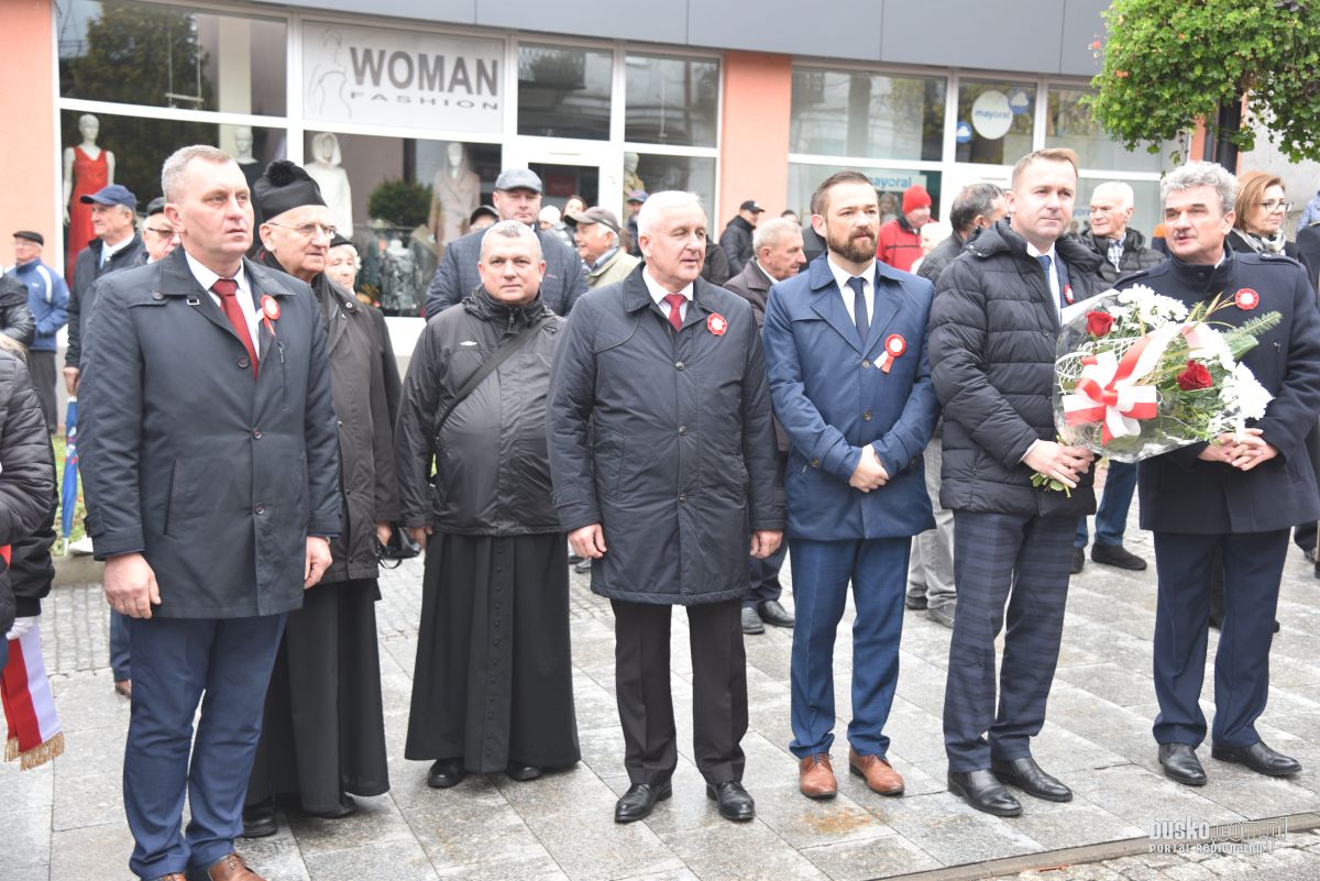 Główna część uroczystości miała miejsce przed pomnikiem Tadeusza Kościuszki, przy al. Mickiewicza. Po przemówieniu Burmistrza Miasta i Gminy Busko-Zdrój oraz złożeniu wiązanek kwiatów uczestnicy obchodów wspólnie odśpiewali Mazurka Dąbrowskiego.