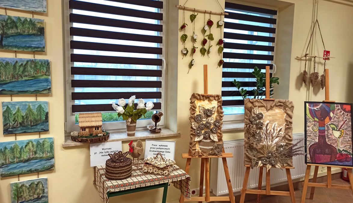 Wystawa prezentuje bogaty zbiór przepięknych prac, wykonanych ręcznie różną techniką i o różnorodnej tematyce przez podopiecznych podczas zajęć z arteterapii, odbywających się w Środowiskowym Domu Samopomocy.