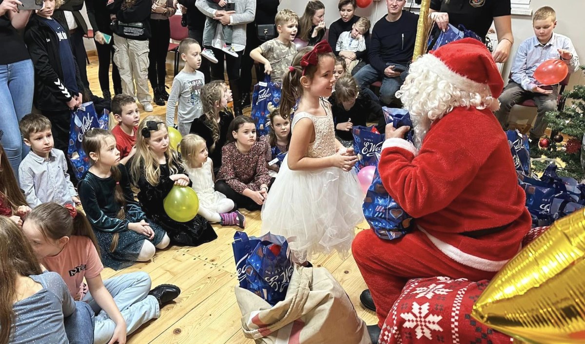 Po ponad dwóch godzinach intensywnej zabawy nadszedł moment, na który wszyscy czekali - wizyta Mikołaja. Dzieci głośno wołały, by nie omijał strażnicy, a Mikołaj wraz z hurtownią SAWA przygotował dla nich świąteczne paczki pełne słodyczy i upominków.