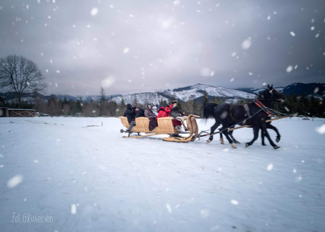 Podróż, swoją narracją, umilała Przewodnicząca Stowarzyszenia Bogusława Majcherczak. Opowiedziała o kalendarzu wydarzeń Stowarzyszenia, a także po krótce przybliżyła historię powstania Zakopanego i znaczenia zakopiańskiego stylu w sztuce. Przygodę pod Tatrami rozpoczęliśmy indywidualnie, kto jak lubi. Były więc: eksploracja Krupówek, czas na pamiątki, McDonald’s, kawa, oscypek z żurawiną, odwiedziny Cmentarza na Pęksowym Brzysku, muzea, zdjęcie z Białym Misiem czy wjazd kolejką na Gubałówkę. W samo południe z Kościeliska wyruszyliśmy saniami w sześć zaprzęgów - na kulig, który prowadził leśnymi trasami.