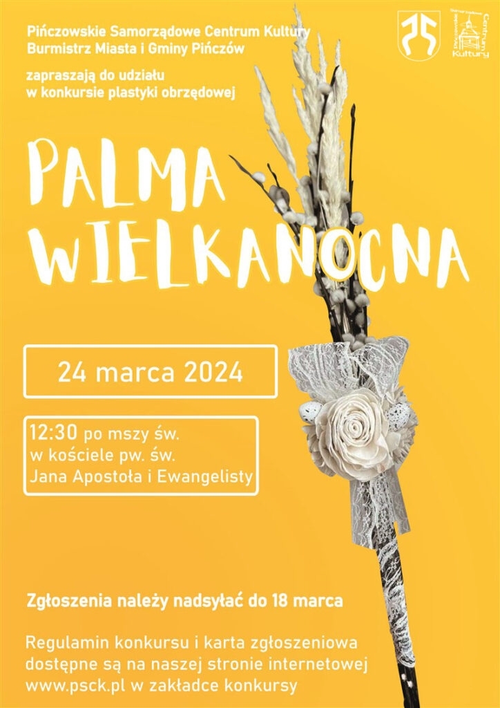 Zapraszamy do udziału w corocznym konkursie "Palm Wielkanocnych". W konkursie ważna jest tradycja, inwencja twórcza, wrażliwość estetyczna i zachowanie wybranych elementów plastyki obrzędowej Świąt Wielkanocnych.