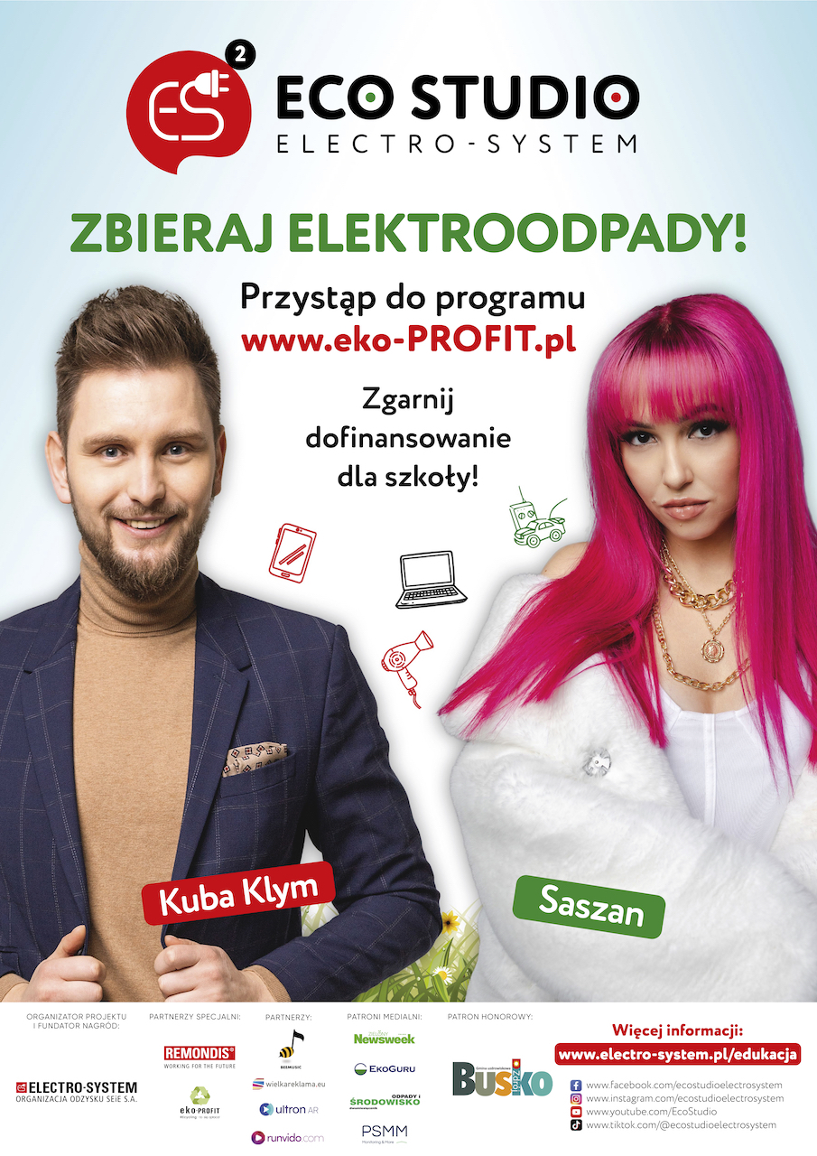 W roku 2024 organizowanych jest 10 eventów ekologiczno - edukacyjnych, przedstawiających problematykę dbania o środowisko w kontekście szczególnego postępowania ze zużytym sprzętem elektrycznym i elektronicznym. Podczas każdego wydarzenia odbywa się krótka lekcja przyrody prowadzona przez ambasadorów, recital muzyczny gwiazdy - Saszan, eko quizy z nagrodami przy trójkącie recyklingowym i ekologiczny trening fitness z hantelkami w postaci elektroodpadów prowadzony przez z Włodka Troszyn. W terminie 30 dni od Wydarzenia szkoły z terenu gminy będą zbierać elektroodpady i przystępować do programu https://eko-profit.pl , w ramach którego mogą otrzymać dofinansowanie dla szkoły. Wybrana zostanie szkoła, które zbierze największą masę elektrośmieci i w nagrodę pojedzie do Warszawy na Wielki Finał na Sprzątanie świata we wrześniu 2024! Zwycięska ekipa, wyłoniona spośród drużyn z całej Polski, która zbierze w terminie 30 dni od Wydarzenia najwięcej elektroodpadów otrzyma również nagrodę rzeczową! Jedno z wydarzeń piątego sezonu Eco Studio ELECTRO - SYSTEM odbędzie się 6 marca br. w Buskim Samorządowym Centrum Kultury. Gmina Busko - Zdrój na czele z Burmistrzem - Waldemarem Sikora i Zastępcą - Michałem Marońskim udowodniła wielokrotnie, że jest gminą zaangażowaną ekologicznie. Przez cały rok na kanale YouTube projektu www.youtube.com/EcoStudio dostępne będą też materiały edukacyjne dla nauczycieli, którzy mogą je wykorzystać podczas lekcji przyrody i godzin wychowawczych.