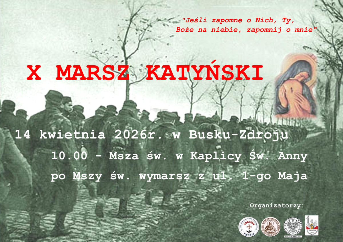 We wtorek, 14 kwietnia, ulicami Buska-Zdroju przemaszeruje X Marsz Katyński. To coroczne wydarzenie, podczas którego mieszkańcy oddają hołd ofiarom Zbrodni Katyńskiej.