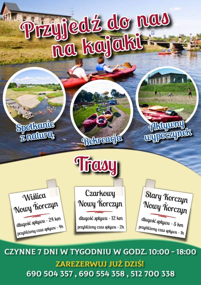 Piękno przyrody i możliwość obcowania z naturą sprawia, że kończymy spływ wypoczęci, pełni nowych sił witalnych. Dobre samopoczucie gwarantowane. Dodatkowo możecie zwiedzić piękny Nowy Korczyn.
