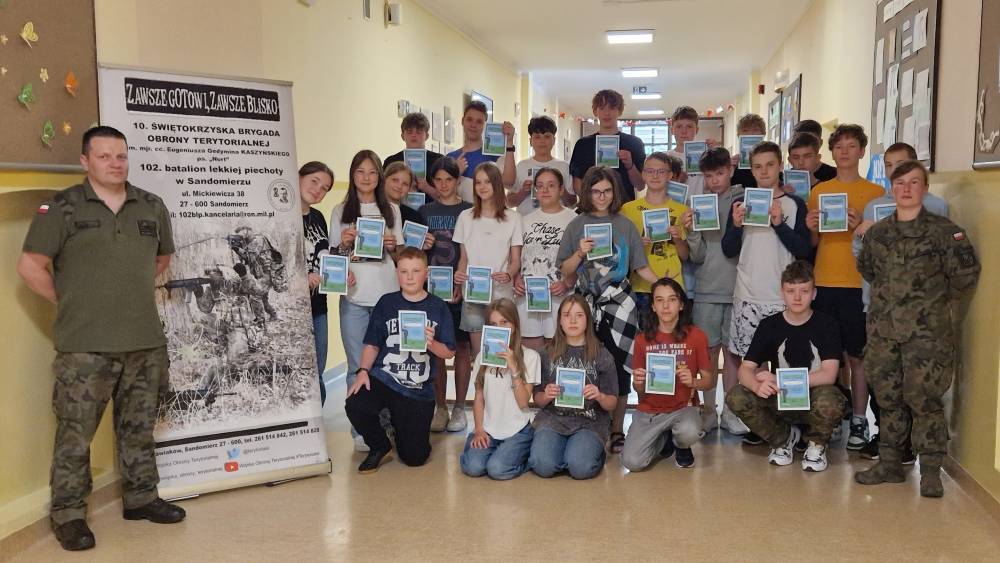 Uczniowie kl. VII A PSP nr1 w Busku- Zdroju wzięli udział w programie edukacyjno-obronnym 'Edukacja z wojskiem'. Głównym celem projektu było podniesienie świadomości dzieci i młodzieży w obszarze bezpieczeństwa i obronności oraz kształtowanie podstawowych nawyków, umiejętności z zakresu obrony i ochrony ludności oraz zachowania w sytuacjach kryzysowych.