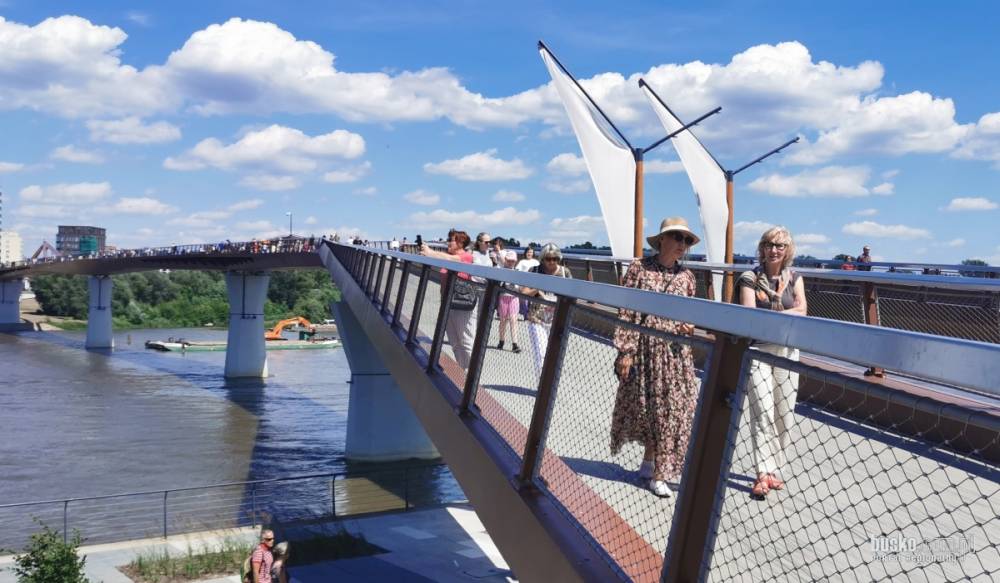 Po wizycie na wystawie uczestnicy wycieczki mieli okazję spacerować po nowej warszawskiej kładce, ciesząc się piękną pogodą i widokami stolicy. Kolejnym punktem programu było zwiedzanie Łazienek Królewskich – jednego z najpiękniejszych parków Warszawy.