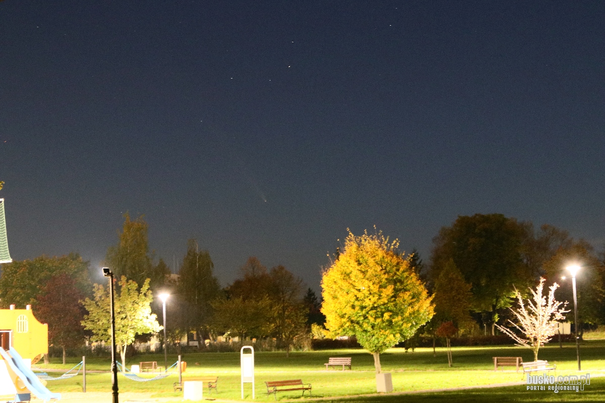 Kometa C/2023 A3 (Tsuchinshan-ATLAS) będzie widoczna nad zachodnim horyzontem już od zmierzchu, czyli około godziny 18:45-19:00. O 19:00 będzie znajdować się 16° nad widnokręgiem, a można ją podziwiać aż do 20:30. Gołym okiem wygląda jak słabsza gwiazda z długą smugą ciągnącą się w lewo i do góry. Wystarczy smartfon z trybem nocnym, aby uchwycić ten kosmiczny spektakl.