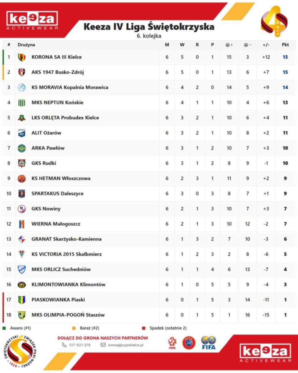Dzięki zwycięstwu drużyna z Buska-Zdroju z dorobkiem 15 punktów zajmuje 2. miejsce w tabeli, ustępując jedynie Koronie III Kielce, która ma identyczny bilans, ale lepszy stosunek bramek.