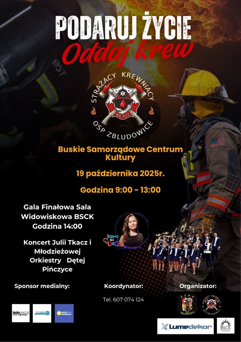 W niedzielę, 19 października 2025 roku, w Buskim Samorządowym Centrum Kultury odbędzie się akcja krwiodawstwa pod hasłem „Podaruj życie – oddaj krew”, organizowana przez Stowarzyszenie 'Strażacy Krewniacy'. Na uczestników czekają liczne atrakcje i niespodzianki, a wydarzenie wspiera gwiazda disco polo - Sławomir.