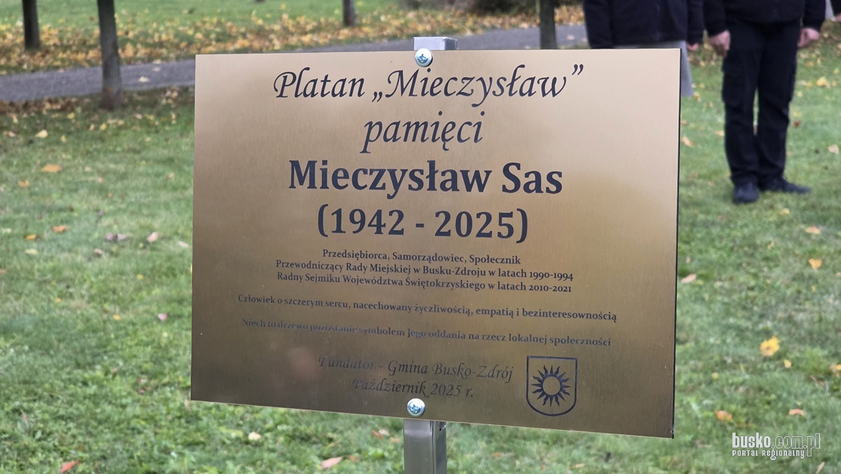 - Zakończyliśmy dziś symboliczny gest - posadzenie platana upamiętniającego życie i działalność śp. Mieczysława Sasa. Był to człowiek niezwykle oddany Busku-Zdrojowi i jego mieszkańcom. Wspierał wszystkie inicjatywy społeczne, które budowały wspólne dobro. Choć odszedł, pamięć o nim pozostanie z nami na wiele lat. Zapraszam wszystkich do odwiedzenia tego miejsca, które stanie się ważnym punktem na mapie naszej pamięci - powiedział Jerzy Szydłowski, burmistrz Buska-Zdroju.