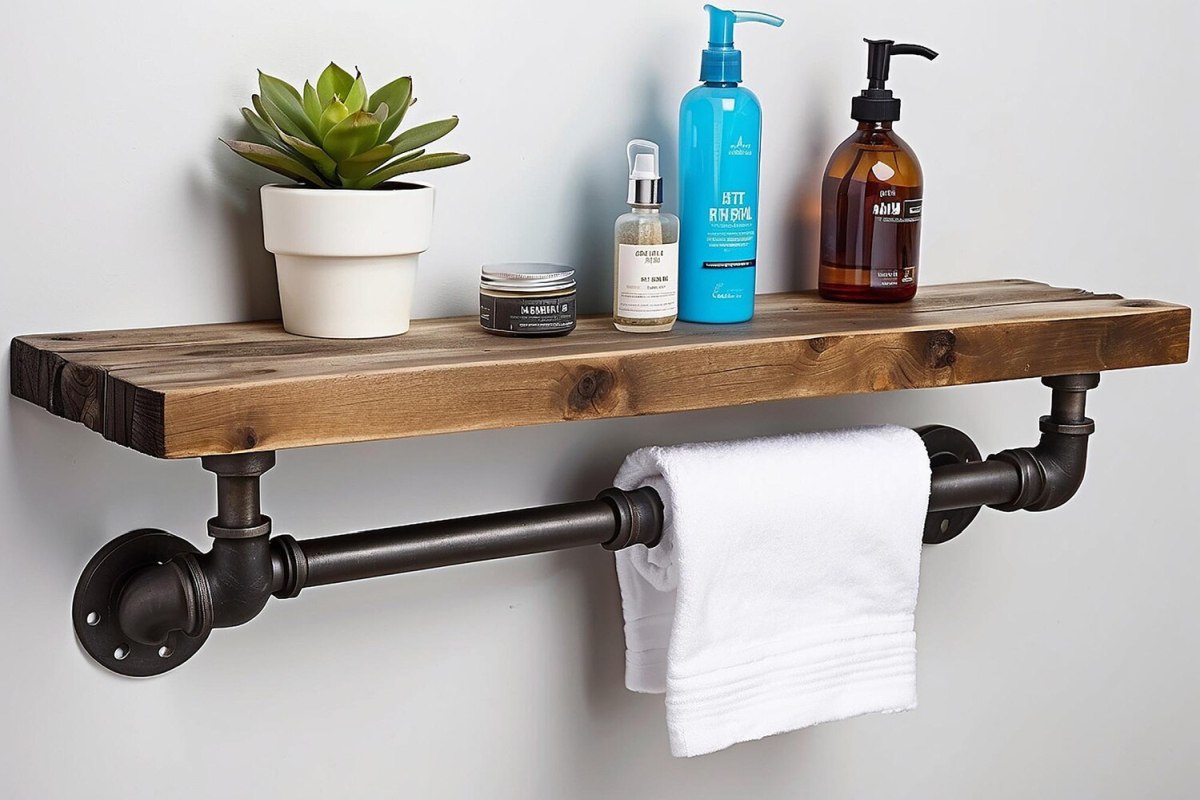 wieszaki i uchwyty na ręczniki w geometrycznych formach,