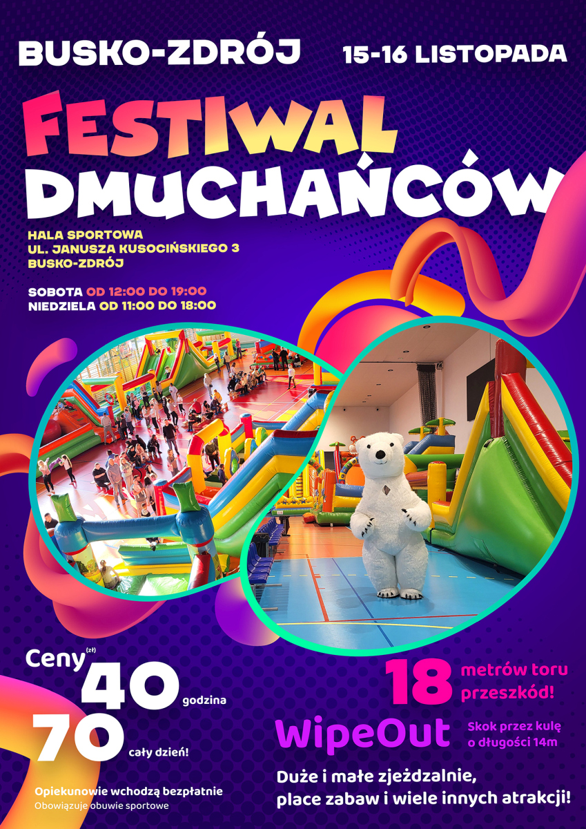 Pogoda nie rozpieszcza, a pomysłów na rodzinny weekend z dziećmi coraz mniej. Tymczasem w Hali Sportowej przy ulicy Janusza Kusocińskiego 3 w Busku-Zdroju najmłodsi będą mogli spożytkować nadmiar energii podczas Festiwalu Dmuchańców, który odbędzie się w sobotę i niedzielę, 15 i 16 listopada 2025 roku.