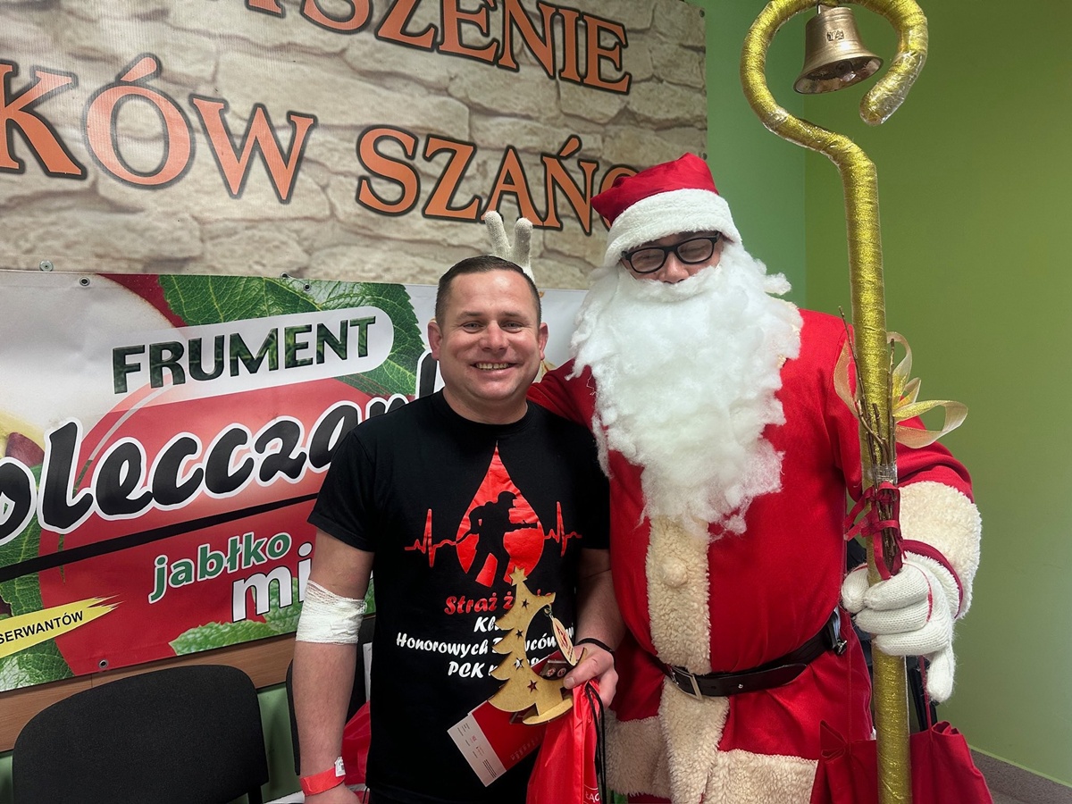Wyjątkowy charakter wydarzeniu nadała obecność Mikołaja. Odwiedził uczestników akcji, wręczając im świąteczne upominki oraz symboliczne choinki przygotowane przez Klub HDK „Straż Życia”. Jego wizyta wniosła do sali jeszcze więcej życzliwości i świątecznego ciepła.