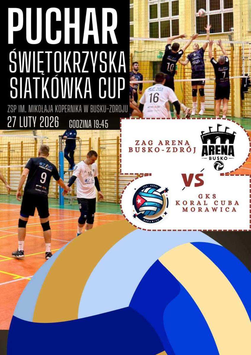 Już dziś w piątek, 27 lutego 2026 roku o godzinie 19:45, kibice siatkówki będą mieli okazję obejrzeć spotkanie w ramach Pucharu Świętokrzyskiej Siatkówki! Na parkiecie hali przy Zespole Szkół Ponadpodstawowych im. Mikołaja Kopernika w Busku-Zdroju zmierzą się drużyny ZAG Arena Busko-Zdrój oraz GKS Koral Cuba Morawica.