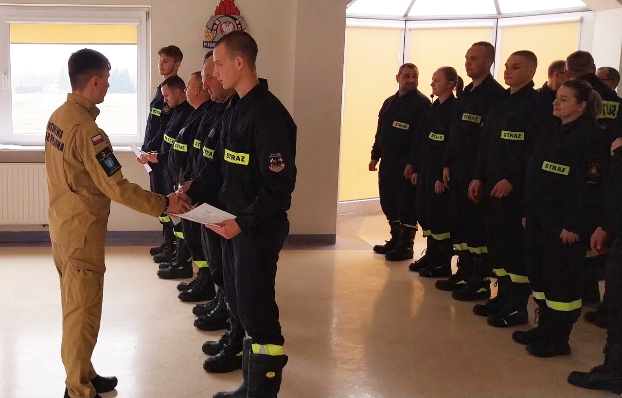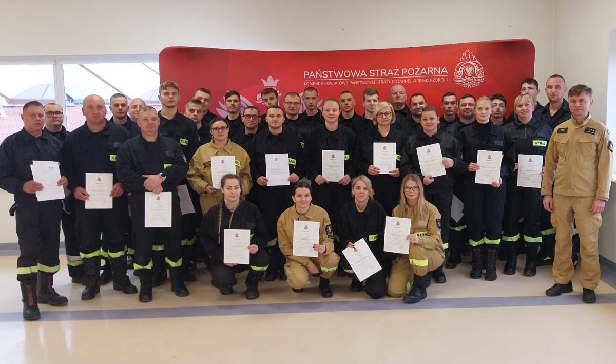 Zaświadczenia o ukończeniu szkolenia wręczył dowódca Jednostki Ratowniczo-Gaśniczej w Busku-Zdroju, st. kpt. Piotr Ryk.