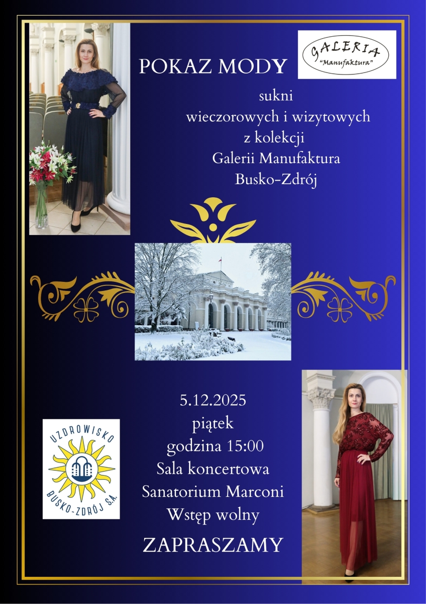 W piątek, 5 grudnia o godzinie 15.00, sala koncertowa Sanatorium Marconi w Busku-Zdroju stanie się przestrzenią pełną elegancji i klasy. To właśnie tam odbędzie się pokaz mody sukni wieczorowych i wizytowych z kolekcji Galerii Manufaktura.