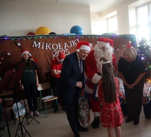 Na spotkanie z Mikołajem przybyli wyjątkowi goście: Jerzy Kolarz Starosta Buski oraz Agnieszka Wojdan Dyrektor Finansowy Uzdrowiska Busko-Zdrój S.A., którzy z wielką radością i życzliwością uczestniczyli w wydarzeniu i osobiście pomagali Mikołajowi wręczać prezenty.