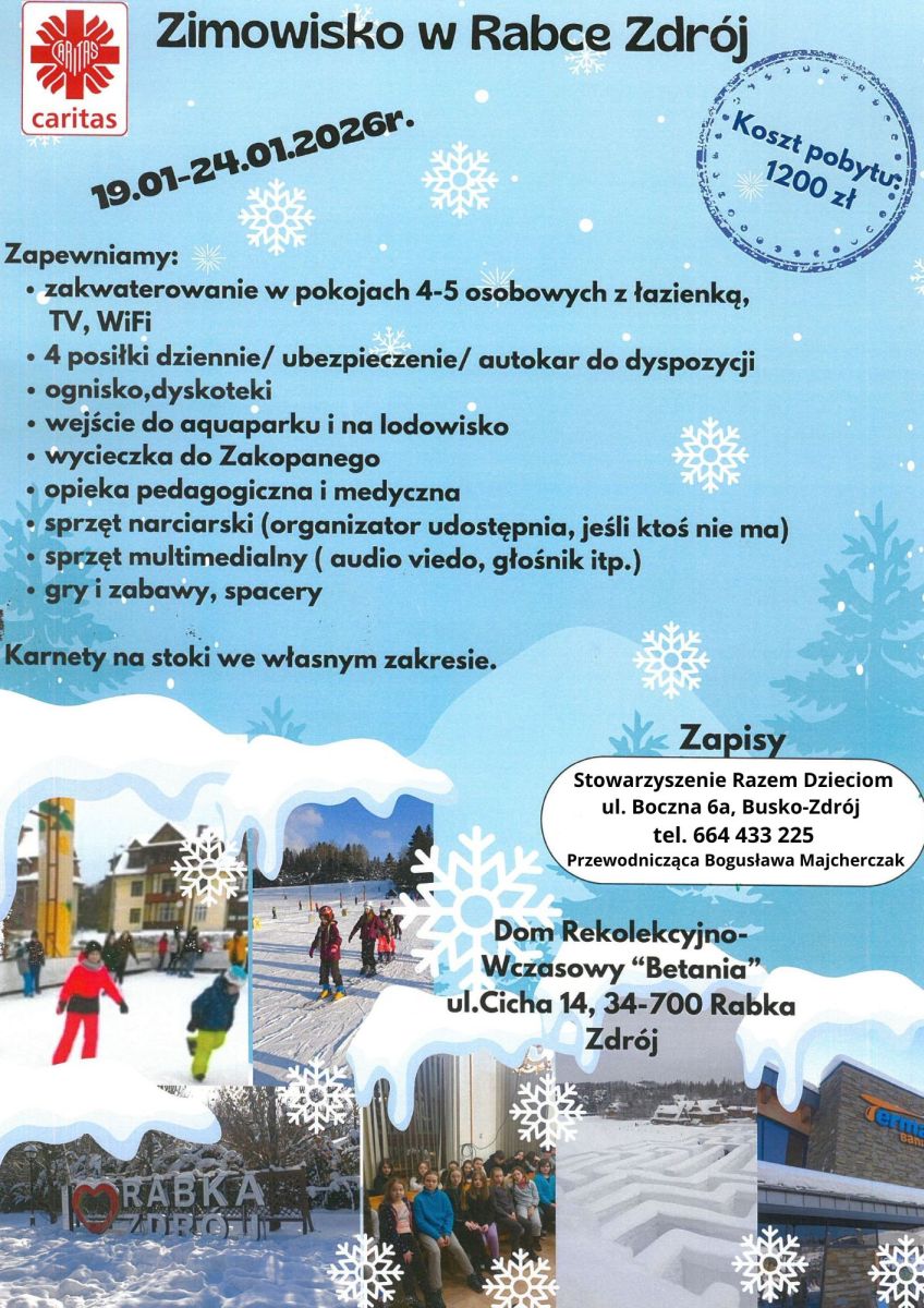 Zimowisko przygotowane zostało przez Stowarzyszenie Razem Dzieciom w Busku-Zdroju we współpracy z Caritas Diecezji Kieleckiej. Miejscem pobytu dzieci będzie Dom Rekolekcyjno-Wypoczynkowy „Betania”, oferujący komfortowe warunki zakwaterowania w pokojach 4–5-osobowych z łazienkami, telewizją oraz dostępem do Wi-Fi. Uczestnicy będą mieli zapewnione cztery posiłki dziennie, ubezpieczenie oraz autokar do dyspozycji w czasie pobytu.