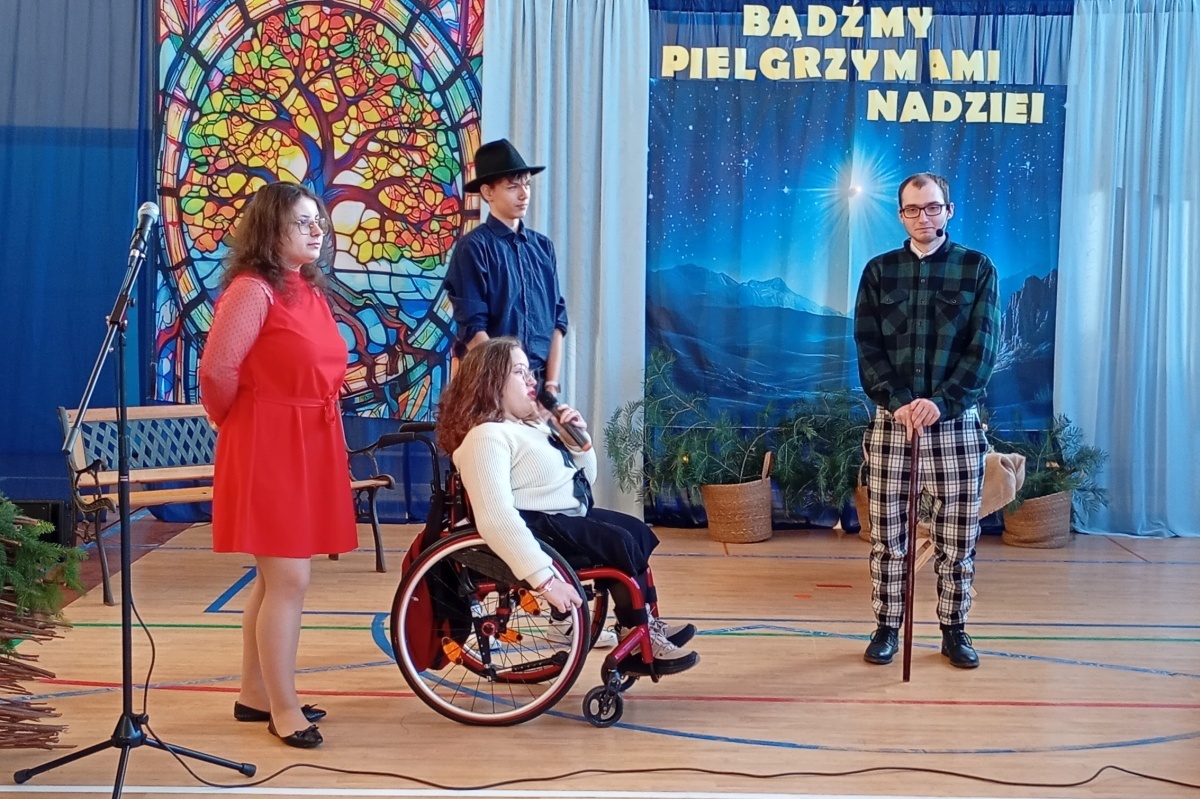 Centralnym punktem uroczystości było przedstawienie bożonarodzeniowe pt. „Bądźmy Pielgrzymami Nadziei”. W nastrojowej scenografii ukazano refleksyjną opowieść o sensie Świąt i wartościach, które łączą ludzi. Uczniowie zwrócili uwagę na to, jak w okresie przedświątecznym łatwo zatracić to, co istotne, oraz jak ważną rolę w codziennym życiu odgrywa nadzieja. Symboliczna wędrówka ukazała jak wielka jest moc wzajemnego wsparcia, otwartości i poszukiwania dobra.