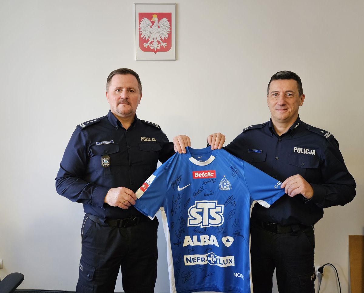 Komendant Powiatowy Policji w Busku-Zdroju insp. Andrzej Skowroński oraz jego zastępca, podinsp. Rafał Kulasek, w imieniu buskich funkcjonariuszy przekazali na aukcję 34. Finału Wielkiej Orkiestry Świątecznej Pomocy wyjątkową koszulkę piłkarską z podpisami zawodników pierwszej drużyny Ruchu Chorzów.