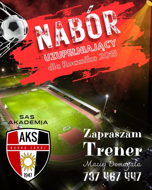 SAS Akademia Piłkarska AKS 1947 Busko-Zdrój ogłosiła nabór uzupełniający do drużyny z rocznika 2015. To propozycja skierowana do dzieci, które chcą rozpocząć lub kontynuować swoją przygodę z piłką nożną w zorganizowanych warunkach i pod okiem kadry szkoleniowej.