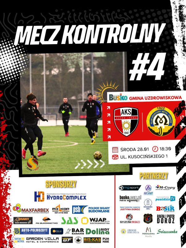 Dziś AKS 1947 Busko-Zdrój rozegra czwarty mecz kontrolny w ramach przygotowań do rundy wiosennej rozgrywek KEEZA 4 Ligi sezonu 2025/2026. Spotkanie będzie kolejnym sprawdzianem formy zespołu na finiszu zimowego okresu przygotowawczego.