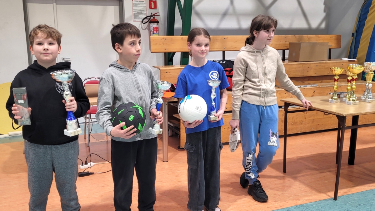 /Zwycięzcy wśród najmłodszych; od lewej Dawid Bednarczyk, Adam Okroshko, Zofia Cerazy i Lena Gibuła z Ostrowca Miasta/