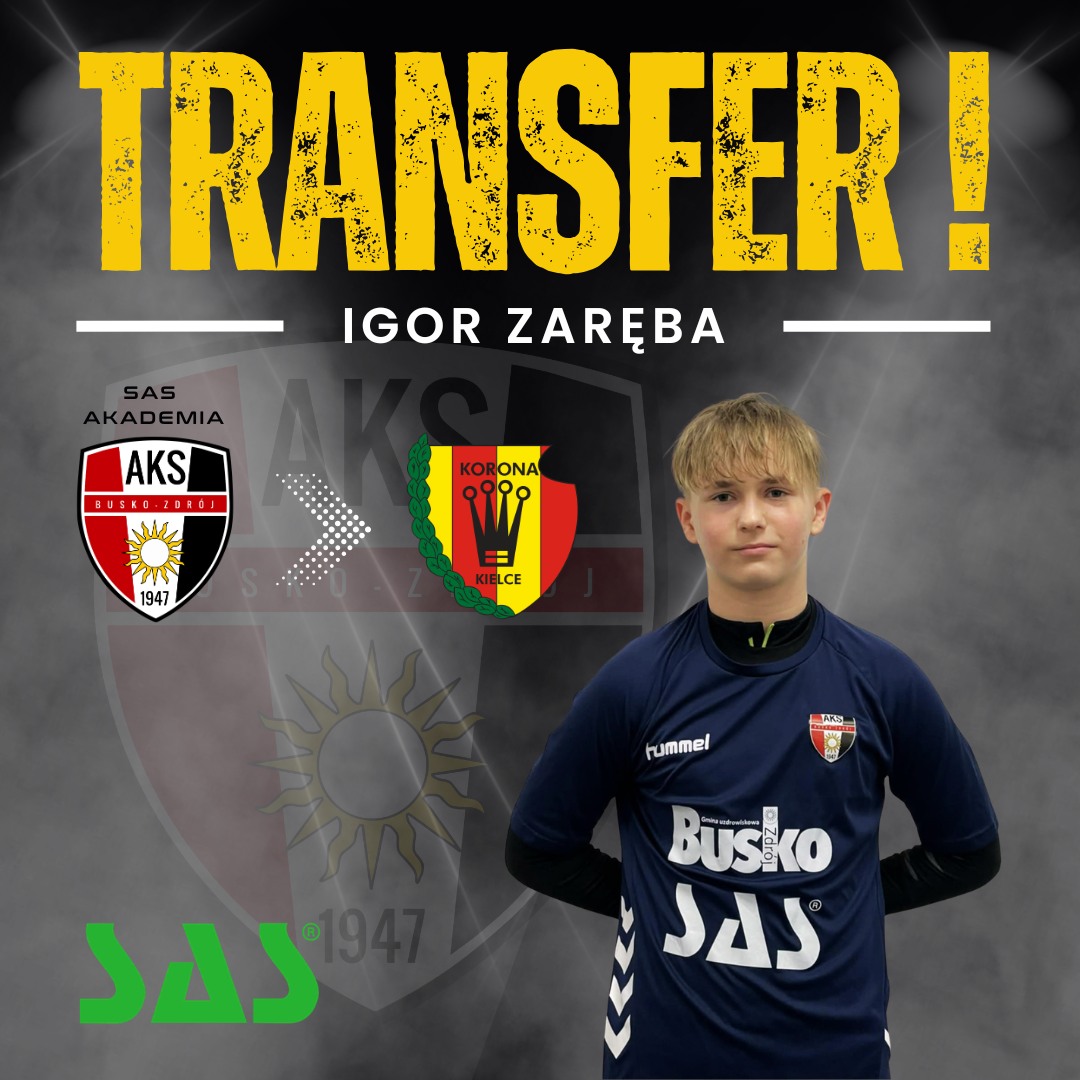 Kolejny młody zawodnik z Buska-Zdroju stawia ważny krok w swojej piłkarskiej drodze. 13-letni Igor Zaręba, bramkarz i podopieczny SAS Akademia AKS 1947 Busko-Zdrój, został zawodnikiem Industria Akademia Korona Kielce.