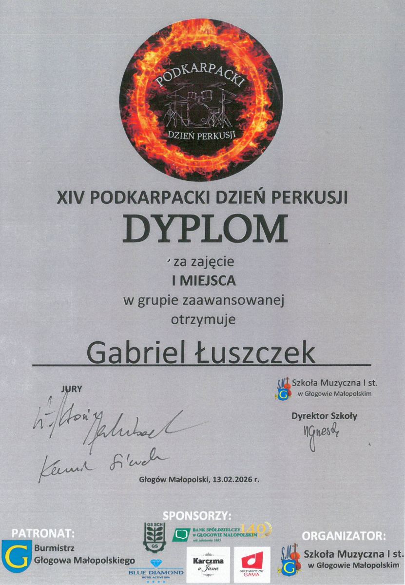 Uczeń Szkoły Muzycznej I stopnia im. Krzysztofa Pendereckiego w Busku-Zdroju sięgnął po pierwsze miejsce w silnie obsadzonej grupie zaawansowanej podczas XIV Podkarpackiego Dnia Perkusji.