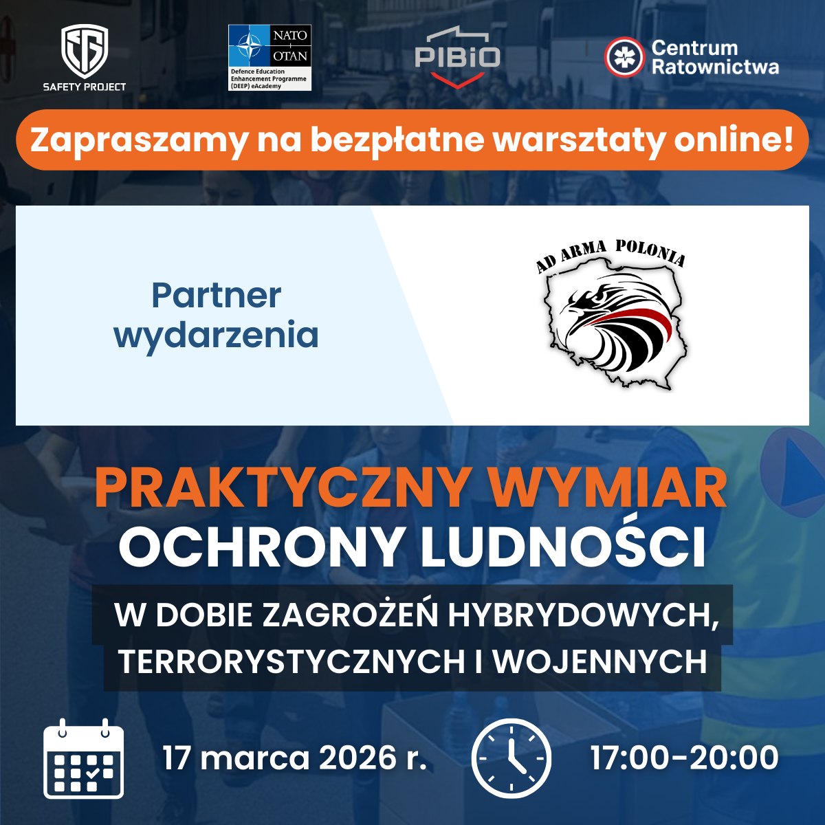 Już dziś, 17 marca, odbędą się ogólnopolskie warsztaty online poświęcone szeroko rozumianemu bezpieczeństwu. To propozycja dla wszystkich, którzy chcą zdobyć praktyczne umiejętności i wiedzę przydatną w sytuacjach zagrożenia - zarówno w życiu codziennym, jak i w sytuacjach kryzysowych.