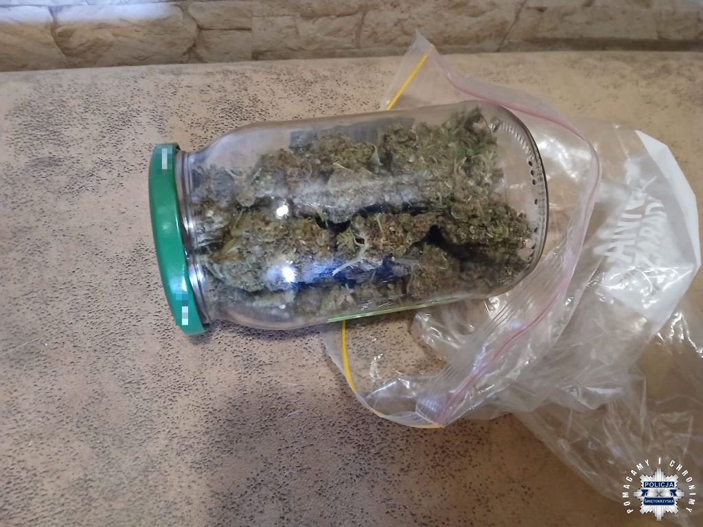 Podczas interwencji 35-latek został poinformowany o celu wizyty i dobrowolnie wydał słoik z zawartością suszu roślinnego. Wstępne badanie wykazało, że zabezpieczona substancja to najprawdopodobniej marihuana o wadze około 60 gramów.