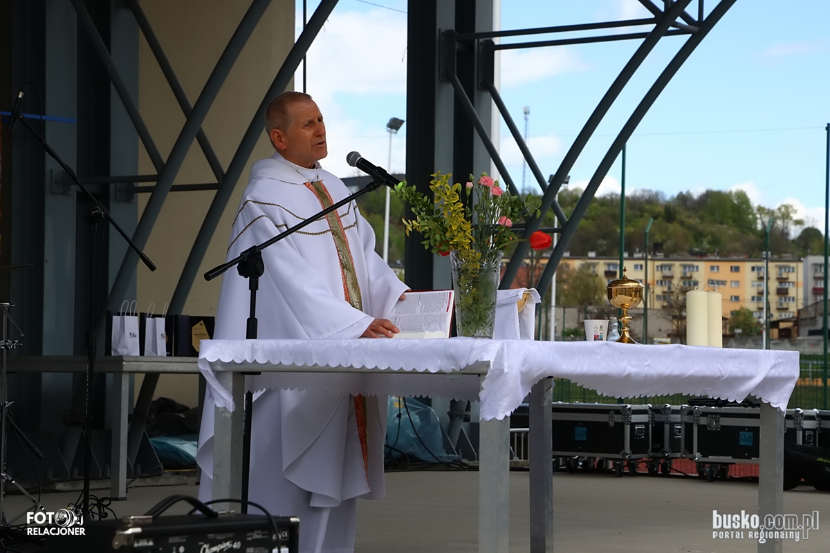 Po zakończeniu parady uczestnicy dotarli na teren Miejskiego Ośrodka Sportu i Rekreacji w Pińczowie, gdzie odbyła się msza polowa w intencji motocyklistów. Nabożeństwo odprawił ks. dziekan Stanisław Kudełka, podkreślając wspólnotowy charakter wydarzenia oraz symboliczne rozpoczęcie sezonu.